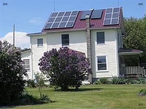 This lovely farmhouse style home is fastidiously up to date and has been retrofitted for energy savings and self-sufficiency--solar electric and hot water minimize utility costs. Sited on 1.7 acres of level open land, organic gardens abound. The first floor opens from the front porch into the entry hall, living room, dining room with built in cabinets and a woodstove. Full bath, sauna, laundry area and airy eat-in kitchen complete the first floor. The back door leads to the full length deck and kitchen garden. Enjoy the expansive 3rd floor space. A home to love for comfort and lifestyle.