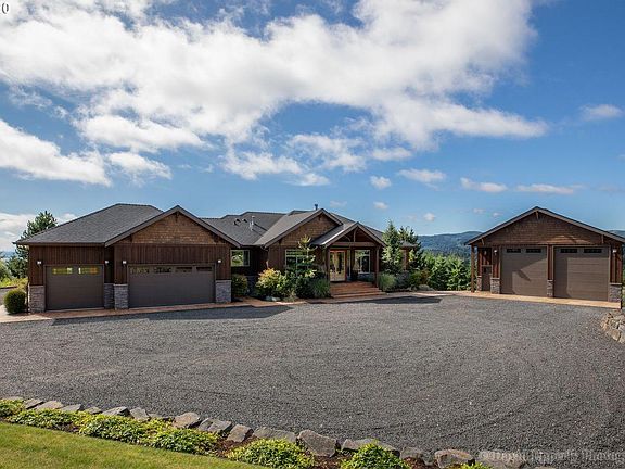 Looking to escape to an exceptional home with fabulous views? This one is high on the hill in Scappoose w/spectacular panoramic views of the mountains,city lights & the Portland skyline.Custom crafted & loaded with amenities,large open rooms & views from almost every main level room.High end appliances, cook island,eating nook & relaxing deck. Master suite including large walk in shower,dual sinks & soaking tub.3 bay garage + separate shop.Gated access.Super easy commuting to Portland & WA Cnty!