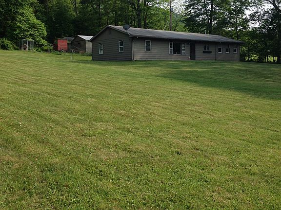 This ranch style home is situated on 10 acres with views of mountains and fields. This house has 2 bedrooms, 1 bathroom, laundry room, sun room with bar, eat in kitchen, pellet stove, pantry, and living room with a picture window. Home has a lot of updates. Detached garage, stable, and chicken coop. More land is available. Call for more info.