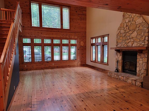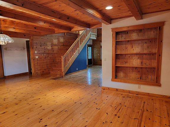 Check out this beautiful and unique two-story family home that was renovated in 2001 and located next to the bike/walking trail! Walk in your front door to a stunning large living/great room with a vaulted ceiling and wood burning fireplace. Living room opens up to a large dining room with a wood beamed ceiling and built-in shelving. The kitchen has ample cupboard space, island, large pantry, and all appliances to stay! Laundry on the main floor! Main floor features two bedrooms, 3/4 bathroom, and a full bathroom with a jetted tub. Walk up your beautiful staircase with a wraparound balcony looking over the living/great room. Upstairs you will find a bonus room with built in bookshelves, another bedroom, and a master bedroom with two walk-in closets, and a full bathroom with a jetted tub and walk-in shower. An extra bonus is that the master bedroom has a small private deck looking over the backyard! You will love the beautiful wood floors and zoned heating throughout this home. Basement has tile/drain system with sump pump installed and can easily be finished off to a family/rec area. Enjoy your evenings grilling and relaxing on the large back deck. Detached 2 car garage with wood burning stove and ample storage space. This property comes with an extra 0.346 acre lot that has a storage shed, storage garage, garden shed, doghouse, and plenty of space for gardening and the kids/pets to play! This home is move in ready and is a must see to appreciate!