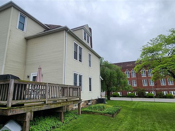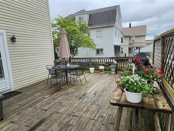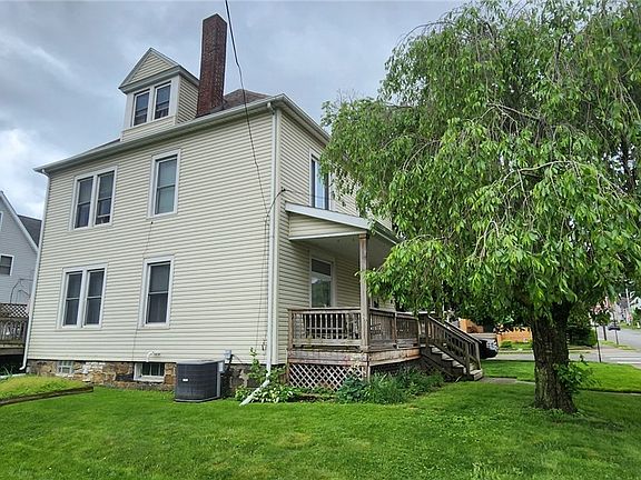 Everyone loves a little history so take notice to this 3 Story Victorian style home.. The front entry hall w/ unique staircase and original stain glass window makes for a stand out presentation. The living room and dining room have functioning pocket doors for desired family privacy and access onto rear deck are steps away. Take notice to the spacious kitchen displaying concrete/stone counter tops, wood cabinetry, laminate flooring and rear staircase to upper levels of home. Achieve added living space from 12x16 den that has no problem adapting to your desired uses. Second floor of home provides 3 nice sized bedrooms and full bath with modern updates plus original hardwood flooring, wainscoting and claw foot tub. Now moving up to the 3rd floor bonus area you get a 4th bedroom w/ adjoining setting area along with separate 11x13 hobby/craft/gaming room. This home also has newer roof, replacement windows, vinyl siding along with other mechanical updates.NOW ISTHE TIME TO TAKE A LOOK