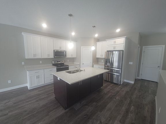 Completely finished up and down new construction with a spectacular floor plan. Home features 3 bedrooms, large workout room, master suite, main floor laundry, large kitchen with a center island and a separate pantry, Quartz countertops in the kitchen and the bathrooms, living room w door that leads to the deck, concrete front porch, large entry foyer, and the deep garage is insulated taped and painted. All appliances are included along with an air exchanger and water softener. Convenient access to downtown, hwy 55, and the Buffalo lake access is just a few blocks away.