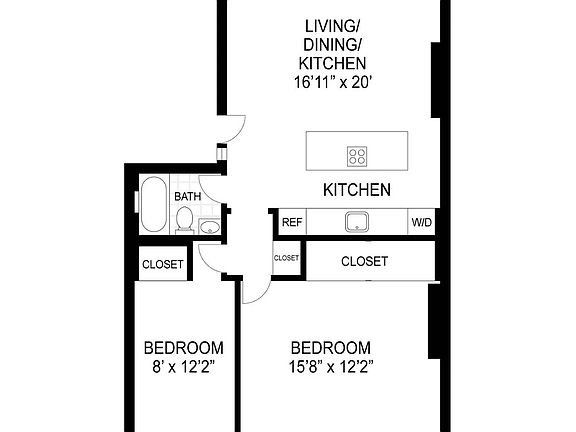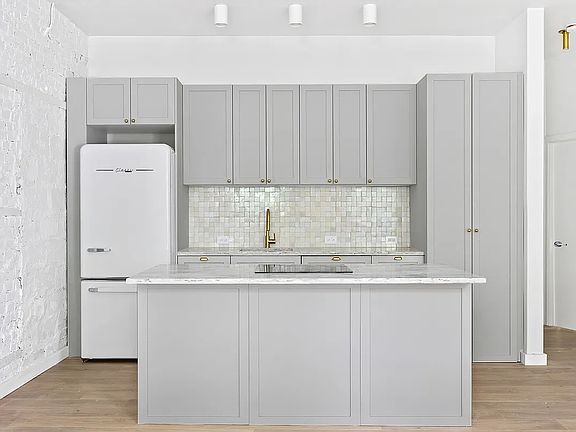 Every inch of this residence has been thoughtfully reimagined for modern living. Soaring ceilings and oversized windows flood the space with natural light, while prewar character adds warmth and texture. The kitchen is a true showstopperoutfitted with marble kitchen island and countertops with high-end finishes, it strikes the perfect balance of form and function. There's a intergrated dishwasher for everyday ease, a stacked washer/dryer and ample storage throughout. The bathroom has been upgraded with elegant brass fixtures, a mirrored vanity with a soaking tub for a spa-like experience at home. The extra large primary bedroom can fit a king sized bed and includes a large arched closet. The second bedroom is perfect for a home office, nursery, or guest bedroom.