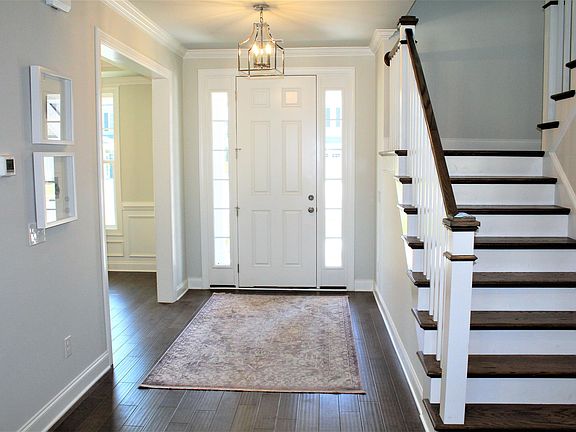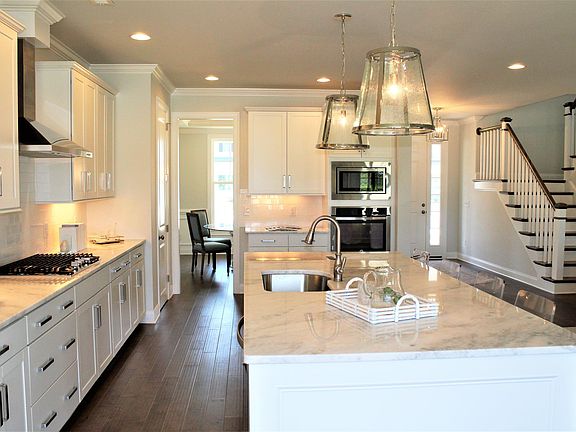 The stunning Fort Fisher offers 4BR/5BA, plus a Rec Room and finished 3rd Floor Bonus. The open plan has a large LR & family style kitchen with large center island, granite counters, 42'' cabinets, pantry, SS appl's, wall oven, cook top & breakfast room. You'll enjoy the formal DR accented with wainscoting & trey ceiling, plus there's a downstairs Bedroom & adjoining bath, perfect for guests. Upstairs is the luxurious master suite with tiled shower and separate garden tub, his/her WIC's, plus 2 more BRs, a Rec Room with full bath & Laundry room. But the best is the huge 3rd floor Bonus Room with full bath offering so many possibilities. Engineered wood flooring, stained oak treads, front & rear covered porches, ext. stone accents, mud room w/bench and cubbies. & more.