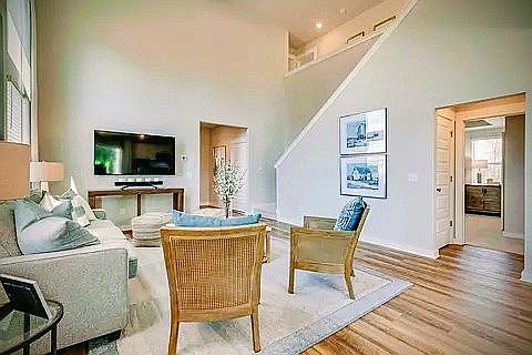 The first floor of this stunning two-story Primrose floor plan offers soaring 20 ft ceilings in the open family room, spacious kitchen and dining room at the back of the home, The spacious first floor bedroom boasts a ceramic tiled bath with oversized shower. The second floor provides a beautiful loft and 3 generous bedrooms with walk in closet. The covered porch at the rear makes this the perfect home to relax, enjoy family and entertain in. Come and see the view!