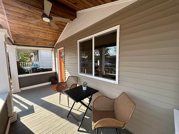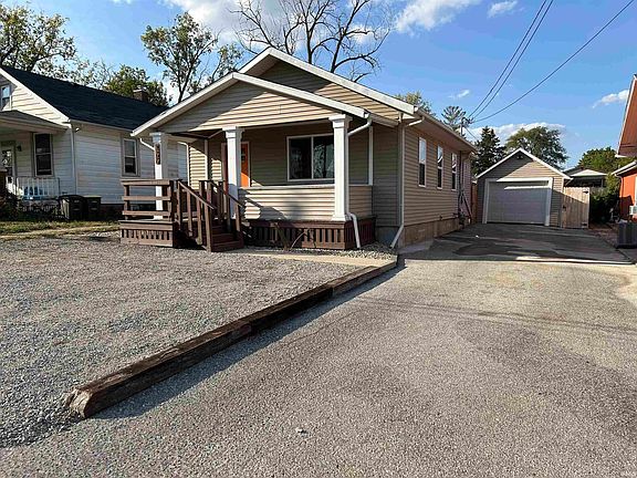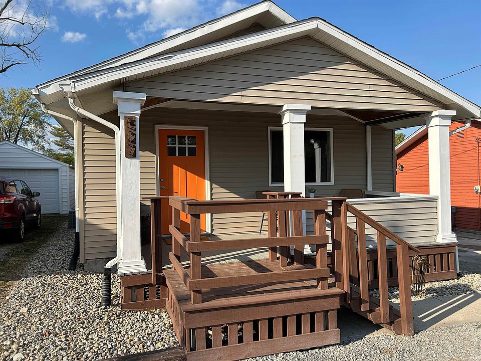 Move-in-ready! Stunning 2 bed 2 Full Bath Bungalow w/ 9 ft ceilings! Relax on your beautifully updated front porch w/ ceiling fan. Fresh gravel in front for extra parking and a 1 car detached garage. Huge back yard with New Wood Privacy Fence, firepit and 12x10 deck. All NEW interior and exterior doors. BRAND NEW: Roof, Central A/C, Vinyl Plank Flooring, Carpet, De-Humidifier, Sump pump/ perimeter drain and lighting. Updated kitchen w/ new cabinets, butcher block counter-tops, NEW stainless-steel Refrigerator, Dishwasher, Disposal, Microwave and Gas Range/Oven. Primary Bedroom features its own updated full bathroom. Large 2nd bedroom, Updated Full Bath w/ laundry shut and Updated Laundry Rm in hallway w/ new cabinets and washer/dryer that stay. Great layout and location! Close to downtown, shopping, entertainment, Turnstone and schools. All that is missing is YOU! Owner is listing agent.