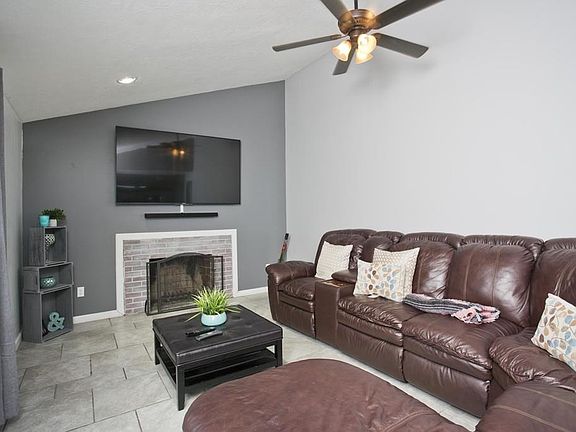 - Liv Dscrp: Fireplace, Ceiling - Cathedral, Flooring - Stone/Ceramic Tile, Ceiling Fan(s)