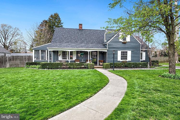 Charm and character abound in this beautifully updated Cape Cod. Pride of ownership shows throughout this 4 bedroom, 2.5 bath home. From the moment you step onto the covered front porch and notice the multi paned glass entry door you will feel right at home. Enter the inviting foyer with hardwood flooring flowing into the living room with wood burning fireplace, french doors to the backyard and a dutch door leading to the screened in side porch. Adjoining the living room is a large dining room that has seated 25 or more for holiday parties with views of the pool from a beautiful bay window with window seat. A separate family room is located off of the foyer and near the kitchen. Kitchen features include copper farmhouse sink, stainless steel appliances, cherry cabinetry and granite countertops with bar seating. Off of the kitchen is an eat in area with tiled floor, exposed wood beams, built in desk, wood burning fireplace and access to the mud room with built in benches, walk in pantry and side door to the driveway. Upstairs boasts a large primary bedroom with updated bath and walk in closet and three additional bedrooms with updated hall bath. Basement has a finished space and laundry area. Enjoy fun gatherings swimming in the built in pool, great conversations around the built in fire pit or outside dinners under the pergola on the paver patio. Additional upgrades include new roof (2020) and newer windows (2017). This is the one you've been waiting for!
