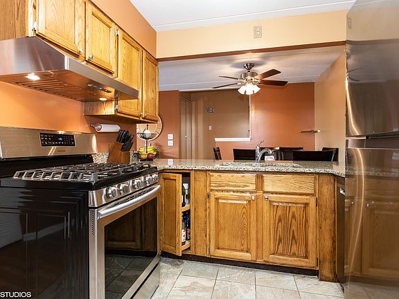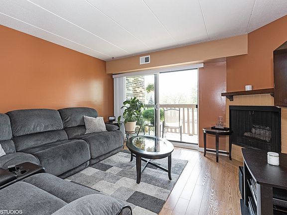 Fantastic value in Birch Point Condos. This home offers 2 beds, 2 baths, 1 car private garage and in-unit laundry. As you walk in, guest closet with step down to the living room that has a fireplace and balcony with fountain views. The dining room has plenty of space for entertaining and with a view to the kitchen. The kitchen has space for table but my seller loves to cook so she added another work space. The kitchen was updated in 2017, stainless steel appliances '19 and granite countertops. Spacious Master Suite with walk-in closet and updated bath '13. 2nd bedroom has it own private hall bath. Furnace & Windows/Sliding Glass Door '13, A/C '19, Wood flooring '19, Garage door opener '14, Washer/Dryer '17 and tons of storage. A very quiet complex with a serene pond and amazing night views. Just blocks from shopping, town, train and expressways.