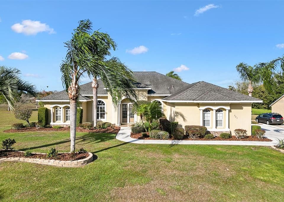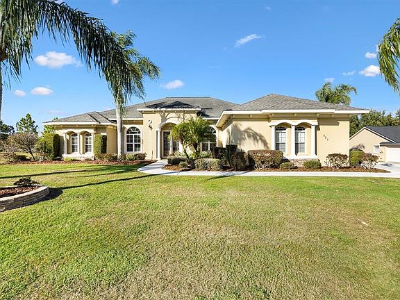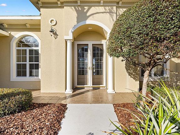 LAKES OF LADY LAKE - Executive-style Biscayne Custom Model—Parade of Homes Winner—perfectly positioned on the golf course in a family-friendly, gated community in the heart of Lady Lake. This exceptional 3-bedroom + den/study, 3-bath, 2 car garage home offers 2,791 sq. ft. of thoughtfully designed living space with upscale finishes throughout. A brand-new roof is being installed—Buyer may choose the color, adding immediate value and peace of mind. From the moment you arrive, mature landscaping and a newly sealed & leveled driveway set the tone for quality and care. Inside, enjoy engineered hardwood flooring, tile in laundry and bathrooms, carpet in guest bedrooms, dining room and office/den. 5" baseboards, crown molding, and elegant double and triple tray ceilings. The open-concept living area flows seamlessly into a chef’s kitchen featuring double door pantry, stainless steel appliances, granite countertops, solid 42" wood cabinets, tile backsplash, and a spacious eat-in area with a mitered window overlooking the pool and golf course—ideal for everyday living. The formal dining room showcases triple tray ceilings, while the private office/den impresses with a 100-year-old fireplace mantle, ceiling fan, and storage closet. The luxurious primary suite offers triple tray ceilings, direct access to the pool, two large walk-in closets, and a spa-inspired en suite with Roman walk-in shower, soaking tub, dual vanities, and private toilet closet. Guest Bedroom #2 features a ceiling fan, walk-in closet, and newer carpet. Guest Bedroom #3 also includes a ceiling fan, walk-in closet, newer carpet, and convenient access to the pool bath and pool area. The spacious inside laundry room provides a large storage cabinet, folding area, and additional storage closet. Step outside to your private resort-style oasis: a large gunite pool with waterfall, sun shelf, built-in seating, expansive covered lanai and oversized screened birdcage, all overlooking the picturesque golf course—perfect for relaxing or entertaining year-round. Additional highlights include HVAC (2021), newer hot water heater, newer pool pump, Klipsch surround sound system, new garage door opener, water softener and an invisible fence for the doggies. Located just 4 minutes from Spanish Springs Square, with easy access to shopping, dining, entertainment and medical facilities. This home offers the ideal blend of luxury, location, and lifestyle. Golf course living at its finest—don’t miss this rare opportunity. Call me today for a private showing.