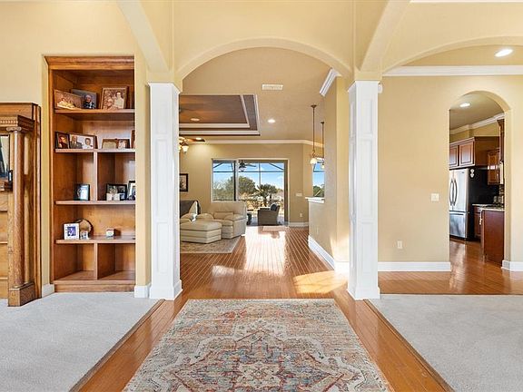 - Built-in Features, Ceiling Fan(s), Coffered Ceiling(s), Crown Molding, Eating Space In Kitchen, High Ceilings, Open Floorplan, Solid Wood Cabinets, Split Bedroom, Stone Counters, Thermostat, Tray Ceiling(s), Walk-In Closet(s)