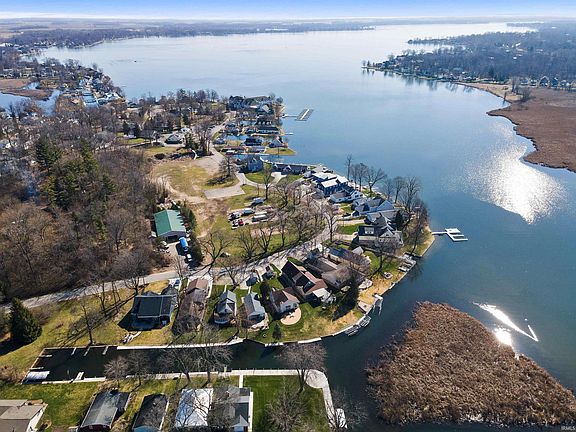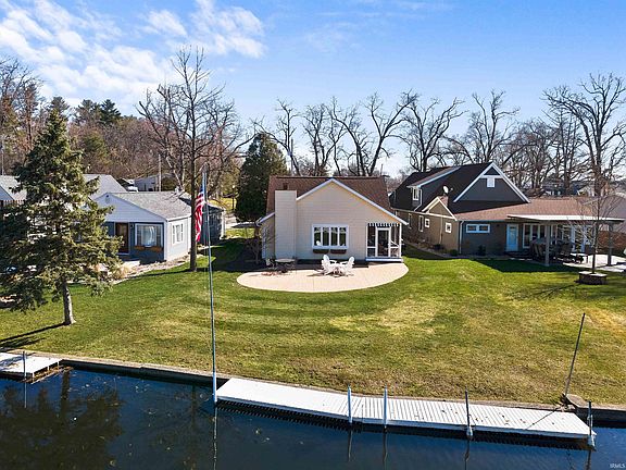 Absolutely beautiful move-in ready 1.5 story open concept lake cottage boasting a big yard w/ 52’ of channel front & fabulous views of the Conklin Bay area on Lake Wawasee—being sold turn key! Conveniently located in highly desirable Oakwood Park, mere minutes from Oakwood Resort & restaurants as well as walking distance to town, more local eateries & SW trail system. Well maintained from outside in w/ obvious pride of ownership, you might never guess this 2 bedroom, 1 bath home was built in 1944 as it has since been completely remodeled. Most recent updates include: expanded high end bathroom & laundry '20; added screened porch & split air system on 2nd floor ’21; new tankless water heater, built-in dining bench, dining shiplap ’22. Sure to charm from the moment you arrive, attractive exterior looks inviting w/ detailed landscaping, long paved concrete drive & freestanding shed for all your tools & lake toys. Inside you’ll find a warm & welcoming atmosphere complemented by gorgeous hardwood floors, crisp white walls & high quality craftsmanship throughout. Head on back to the sunken main living zone w/ stone wood burning fireplace to keep you nice & cozy. Enjoy meals w/ waterfront view from row of windows & sliding glass doors to fantastic enclosed porch w/ ceiling fan for added comfort. Large flex space beside living has casual dining nook w/ built-in seating. Efficient kitchen has everything you need w/ abundant cabinetry & SS fridge/dishwasher. Good sized main floor bedroom in hall next to stylish main bath w/ wainscoting, tile floor, modern vanity & tile walk-in shower. Smallest bedroom (6x10) was converted into main floor laundry room & completes 1st level. Upstairs is one long bed/bunkroom & sellers had architectural plans drawn up to create additional bed & bath which can still be utilized as needed. Expansive yard features rounded oversized stamped concrete patio w/ zen-like nature views—ideal for kicking back & relaxing in the sunshine! Lakefront boating just seconds from your front door plus lots of space for both living & entertaining family & friends. Lake Wawasee is an all sports lake perfect for both year-round living or weekend retreats. Are you ready to start making memories here? Don't let this one slip away—reach out today! Pier #676-11