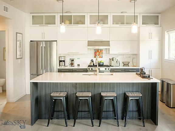 Introducing an exclusive bespoke condo nestled in downtown Bozeman, where the allure of vibrant urban living harmoniously meets the breathtaking beauty of the Bridger Mountains. This remarkable residence offers three bedrooms, 3.5 bathrooms, and a captivating 180-degree view of the Bridger Mountains, along with a splendid rooftop deck, and an attached dedicated 2+car heated garage. Situated in the heart of downtown Bozeman, this condo is more than just a residence; it's a gateway to the spirited life of a college mountain town. Its proximity to Montana State University places world-class education & a vibrant campus environment at your doorstep. Its proximity to amenities is also exceptional! Take a short stroll to discover a plethora of dining options, ensuring that you're never far from a culinary adventure. Several music venues are within blocks that cater to your entertainment cravings, making it effortless to immerse yourself in the local arts & culture scene. Downtown shopping opportunities, from charming boutiques to modern retail outlets, are steps away, making every shopping trip a delightful experience. And within just a few blocks, you'll discover an abundance of extensive hiking trails & thrilling sledding hills, perfect for embracing both outdoor adventures & winter fun. The interior features two well-appointed ensuite bedrooms on the 3rd floor, designed for comfort, style & convenience. The 3rd bedroom on the 4th floor is enhanced with a Murphy bed for functionality & versatility, and also serves as a bonus room/living space that opens to the large corner rooftop deck. The living space exudes sophistication & comfort, offering large windows that showcase the sweeping 180-degree views of the Bridger Mountains, a constant reminder of the natural beauty surrounding this vibrant college town. The crown jewel of this condo is the rooftop deck, a private oasis perfect for hosting gatherings, unwinding, and taking in the awe-inspiring mountain vistas. It's an idyllic spot for stargazing, sipping morning coffee, or enjoying sunset cocktails. This bespoke condo in downtown Bozeman seamlessly combines the energy of a vibrant college town with the tranquility and grandeur of the Bridger Mountains. Whether you seek the excitement of downtown life, convenient access to amenities, or the serenity of mountain views, this residence has it all.