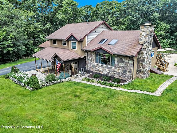 This fieldstone/stucco constructed home is peacefully situated on over 3.5 acres of land in the North Pocono School District and located just 2 miles from the Casey Highway with easy access to I84, 380, I81 and local ski slopes. SETTLED FOR LIFE That's what you'll be in this charming modern home featuring an open floor plan. Enter from the cozy rocking chair front porch through the 9 ft. solid oak restored double doors to the main floor offering a great room perfect for entertaining and spacious family room (potential for private living space). The second level host a living room with vaulted beam ceilings, skylights and field stone gas fireplace which opens to the custom kitchen boasting knotty Alderwood cabinets, granite countertops, large center island perfect for entertaining, farm sink and stainless-steel appliances. Retreat to the third level hosting three bedrooms, 3/4 bath with Laundry plus the serene, spacious and bright master bedroom which features a modern en-suite with deep soaking tub and tile rain shower (6x3.5). Ready for paradise? Enjoy the outdoors on your (24x20) deck or second deck. The inground heated pool (18x38) is surrounded by a large stone patio perfect for entertaining. Also, included is a shed and oversized garage only 3 years young. You've just found the perfect combination of home and nature in a gorgeous private setting! Home Warranty Included., Baths: 1 Bath Lev 1,Full Bath - Master,2+ Bath Lev 3,Modern, Beds: 2+ Bed 3rd, SqFt Fin - Main: 807.00, SqFt Fin - 3rd: 786.00, Tax Information: Available, Ultra Modern: Y, SqFt Fin - 2nd: 657.00, Additional Info: Living Room TV and Wine Rack Included - Hot Tub being sold as is. Parcel 2 included:1060301000236 - 2009-27396 Total Assessment and Taxes reflect both parcels. See Attached Deeds