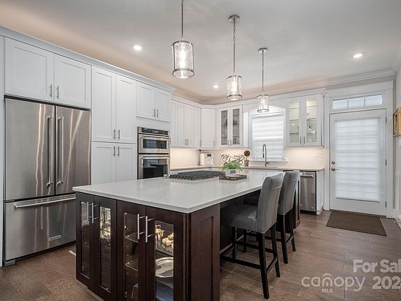 Welcome to Downtown Davidson and expect to be wowed by this 3-story townhome that is basically brand new! This end unit townhome has an abundance of natural lighting with custom plantation shutters and window coverings that will make it turn key to move right in! Open floor plan with top-of-the-line gourmet kitchen such as quartz countertops, large kitchen island, upgraded shaker cabinets, stainless steel appliances, 5 burner gas cooktop and under cabinet lighting. The townhome has hardwood floors, ceiling fans, upgraded primary bath with large walk-in shower and 2 secondary bedrooms with shared full bath. The gas fireplace and wetbar on the lower level make entertaining a pleasure while the 2-car garage has easy access to the main level via a private, fenced patio. Enjoy the low maintenance lifestyle while the HOA maintains landscaping in the front/side yards.