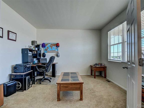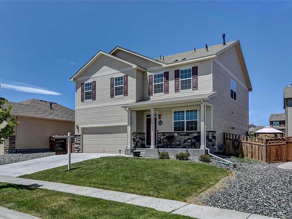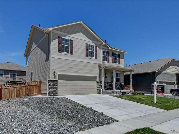 Beautiful two-story home located in Silver Peaks features an open design with spacious fenced in backyard, rare all 4 bedrooms on one level and private main floor office. Kitchen with stainless steel appliances, island w/breakfast bar seating, walk-in pantry and eating area opens up to the Great Room with sliding glass door to the back patio with concrete walkway and private fenced-in backyard. Private office with double doors provides the perfect environment for remote working. The upper level has tons of living space with a loft, enclosed laundry area and 4 nicely sized bedrooms. Spacious Master Bedroom features a walk-in closet and private bath with double sink vanity, standup shower and water closet. Additional features of this home offer a two-car garage, new exterior paint (1yr), sprinklers (front and backyard), NEST and Ring system, upgraded AC unit and recessed lighting throughout. Location is a short walk to new K-2 elementary school and minutes from shopping, restaurants and walking trails, boating and fishing at Barr Lake State Park. Enjoy tons of open space all around you in this community.