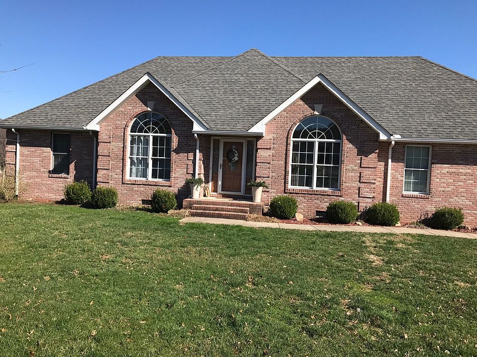 Brick, 1 floor plan offering 3BR/3BA. Formal living room and dining rooms offering hardwood flooring. Large Gathering room with gas log fireplace that leads out to a nice screened in porch that overlooks over 2.5 acres. Kitchen open to eat-in area w/hardwood flooring. Owner's suite offers private bath with vaulted ceiling, jetted tub and walk-in closet. Large walk-up attic that could be finished for bonus room or just use as storage. 3 car garage - 2 attached, 1 detached with workshop and walk up attic. This home offers so much. Must see! Call for an appointment today!