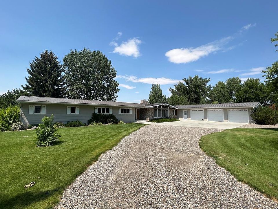 Amazing home on 1.62 acres right outside of Worland! This spacious ranch has been meticulously maintained by the same owners for many years. Home includes two master suites - one with a huge 13'8" x 7'8" walk-in closet, jetted tub and walk-in shower. Second has a full bath and plentiful closet space. Enjoy the beautiful views from the family room, kitchen, master bath, and den. Living and dining rooms boast tongue and groove ceilings, and decorative wood beams flow throughout the main living spaces. This property continues to wow when you walk outside to the expansive grounds that have been carefully manicured to include beautiful mature trees and perennial plants. The yard is irrigated from the Lower Hanover Canal by way of a recently updated pump. The back patio is a perfect spot to sit and watch the sunset in the shade under the automatic awning. Storage building perfectly matches main house and has a concrete floor, wall heater, and dog kennel.