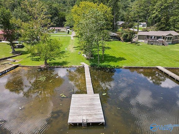 Lake Guntersville - Lake Access in Honeycomb Valley - 4 Community Piers in the Neighborhood - This beautiful 3 bedroom 2 bath home has been completely remodeled! Tons of storage under the house. Kitchen was gutted and turned into a true custom Chef's Kitchen in 2022. Unique pull outs in cabinets. Roof and front Windows replaced in 2016. Extra bedroom has 4' concrete off wall - to make a great Safe Room. 200 gallon propane tank to remain with home. Stove uses propane. Wired outside kitchen window for a fish pond. Appliances (2 yrs old), curtains, and washer/dryer to remain at no value. Hot tub pad. Enjoy lake life at its best on the oversized veranda backing up to nature.