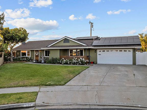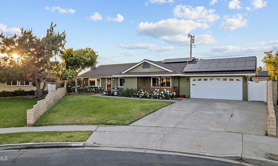Honey, stop the car! This charming single-story home is ideally located on a quiet cul-de-sac in central Camarillo and offers the perfect blend of comfort, upgrades, and outdoor space. Featuring 4 bedrooms, 2 bathrooms, and an attached 2-car garage, this home sits on a generous 8,704 sq ft lot with a massive backyard--perfect for entertaining, gardening, or relaxing under the stars. Step inside through a beautiful custom maple Dutch door and into a spacious living room filled with natural light, complete with a cozy fireplace and open sightlines. The updated kitchen is a dream for any home chef, featuring a 36' Thermador dual-fuel range, Thermador refrigerator, quartzite countertops, semi-custom inset shaker cabinets with soft-close doors, and a farmhouse sink with a view of the lush backyard.Out back, enjoy a serene and private oasis with mature fruit trees, a chicken coop, decorative lighting, walkways, a detached covered patio deck, spa, garden area, and full block wall fencing for added privacy.Additional upgrades include dual-pane windows, seller-owned solar panels, A/C, reverse osmosis water filtration, a home security system, and an upgraded electrical panel wired for generator use. The garage is wired with 220 and the expanded driveway provides extra parking.This is more than a house--it's a home where memories are made. Don't miss this amazing opportunity in a fantastic neighborhood!