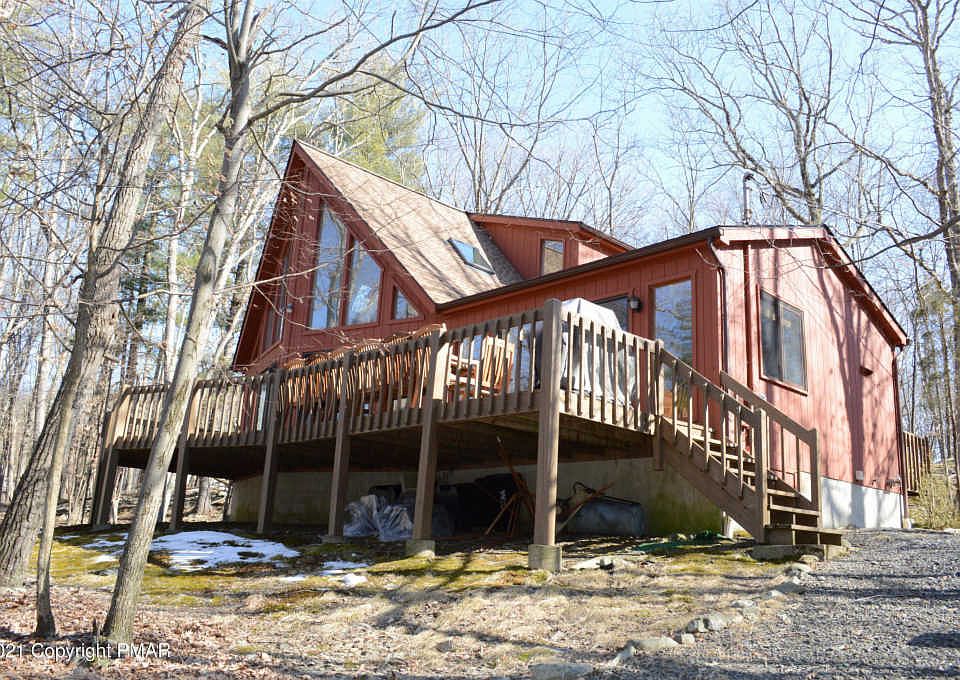 Multiple offers! Highest and best by 6:00 PM Monday 3/29. Lakefront in Penn Estates! Gorgeous 3 bedroom 2 bath modified prow front chalet in excellent condition. Fully renovated 5 years ago, new roof 11/2020. Kitchen with stainless steel appliances. Bamboo floors in kitchen and dining area. Great view and easy access of the lake. Enjoy the summer leisure hours on the expansive deck. Private setting with adjoining greenbelt area. Extra lot available. Don't miss out on this one!