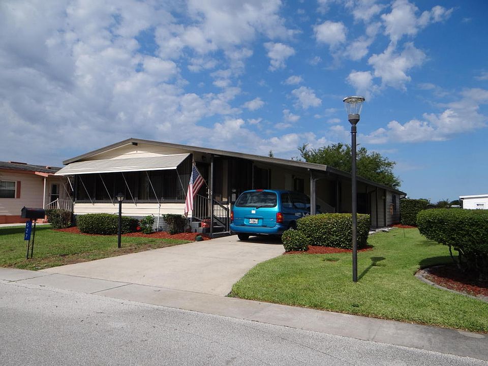 Looking for affordable Florida living? Look no further when you can live in this 55+ community conveniently located Hollywood Estates. The property has not just one utility shed/workshop but two. One with tons of storage space, hurricane shutters, washer, dryer, and laundry sink and the another workshop off the master bedroom would be great for a man cave or crafting room. Features include dining area with built in china hutch, nice kitchen, walk in closet in both bedrooms, built in shelves and dresser in master, built in shelves and corner desk in spare bedroom, big living room and a spacious and sunny Florida room. Hollywood Estates features a community pool, shuffle board courts, and clubhouse.