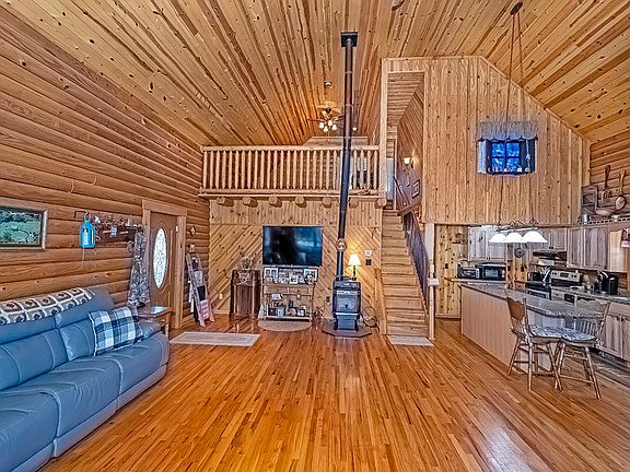 Looking for a 2-bedroom Log home on 3 acres? Take a peek at 527 Little Creek Rd! Built in 2008 and lovingly maintained, this secluded cabin is awaiting its next owners. The open concept kitchen, dining and living area is great for entertaining. Upstairs you will find a bedroom/loft with a full bathroom and plenty of closet space. An additional bedroom and full bathroom are located on the main level. Step out the front door to enjoy the covered porch and relax on the Adirondack chairs or the porch swing. The lower level features a one car garage and a HUGE area for a workbench. This home includes lots of extras!!