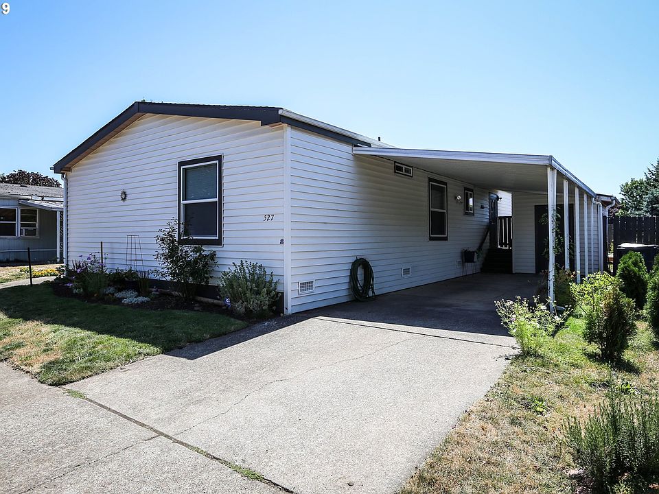 . 1992 Redmond in Lochaven subdivision - Family Park. Back yard has tall fencing. Inside remodeled a few years ago to include energy efficient vinyl windows, kitchen cabinets & vanities in both baths, tile & laminate floors, textured walls, toilets, interior doors, furnace & hot water heater. Outside replaced w/easy care vinyl siding. Most light energy efficient LED, Shed. New Roof and skylight in 2017. Space rent is $595/month