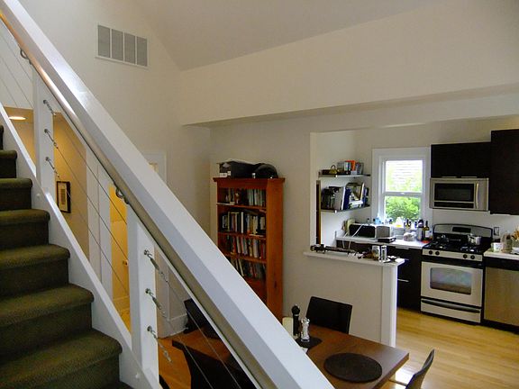 Light-filled 2-story top-floor corner unit on quiet green Malden Avenue East, one block from 15th Avenue shops, restaurants, conveniences. Hard wood floors, lofted ceiling, two large skylit bedrooms and full bath upstairs, classic tiled half-bathroom downstairs, 2-story-high living/dining area, spacious kitchen with gas stove, microwave, dishwasher. Garden and sky views, onsite coin-op laundry. Absolutely no pets and no smoking anywhere on property. Shared furnished back yard for BBQ, gardening. 12-month lease, $800 refundable security deposit, last month's rent prepaid. Resident pays electric, gas, communications, landlord pays water-sewer-garbage.