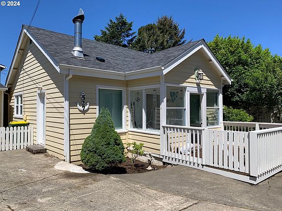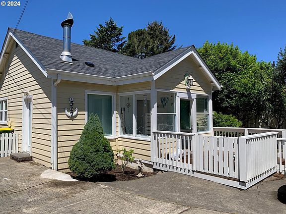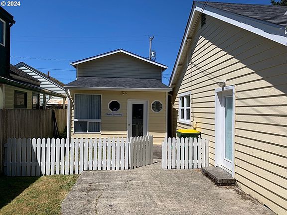 Unique opportunity minutes to Old Town, river, shopping, medical and the Dunes and so much more Florence has to offer. Enter through the covered front porch into the large very spacious great room. With 2 bedrooms & bath on main level then head upstairs to 306 sq ft guest quarters with kitchenette, bathroom and private entrance from back alley along with a private deck. Easy access door to close off upper area for privacy. Unit has fenced front yard for outside entertaining. (Unit is rented for $1600.00 on month to month). Back of house was converted into a studio with permitted subpanel & circuits for its own electrical meter for kitchen, bathroom & laundry room w/private entrance off back alley. (Unit is rented for $1045.00 month to month). Zonal heating. Pole barn was permitted to convert existing 576 sq ft garage into living space. Plumbing permit was taken out to install a new shower and install a washing machine. Electrical permit was taken out for a subpanel & circuits for laundry room, bathroom and kitchenette. Work was completed but never finaled. All 2024-10-16
