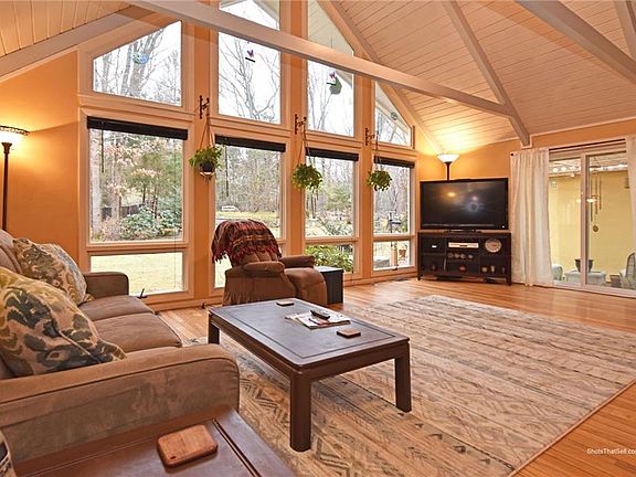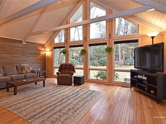 Privacy and tranquility will surround you in this exceptionally unique contemporary ranch home less than two miles from downtown East Greenwich shops, restaurants and marinas. Set back on 3.34 acres off of Middle Road this property offers one level living at it's best! Master bed with updated bath is separated from second and third beds (and 2nd full bath) by the amazing living room with brick fireplace, soaring ceilings and breathtaking windows overlooking the fabulous lot. Kitchen has stainless appliances and is open to eating area. First floor laundry and a loft for that extra bit of living space. Exterior access to basement for storage and 2 car detached garage. Beautiful in-ground pool with new liner and built-in stairs. This is NOT a drive-by.