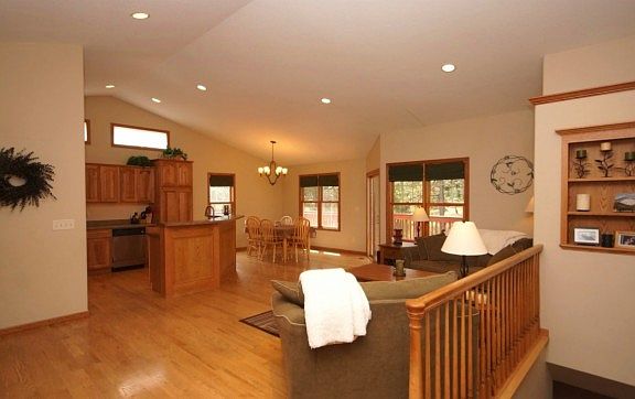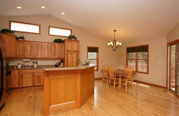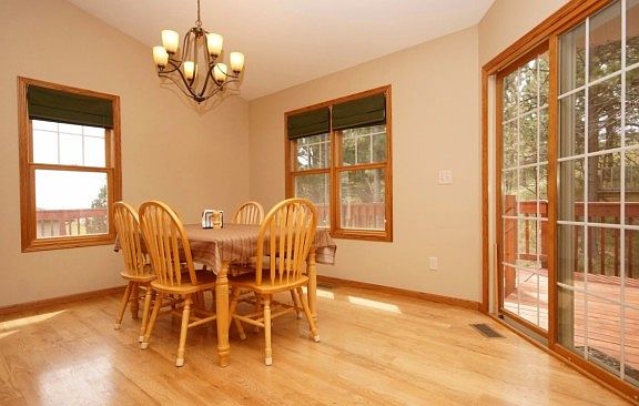 Gorgeous home in Minnesota Ridge offering an incredible open floor plan. Great curb appeal leads you into this immaculate, turn-key home. The main floor offers unique detailing, dramatic vaults and beautiful windows providing plenty of natural light. The main level encompasses the welcoming living room to the completely open kitchen with breakfast bar seating, dining area with access to spacious deck, master suite, 2 bedrooms, main bathroom and convenient main floor laundry. The master suite features private bathroom with separate vanities, whirlpool tub, shower, large walk-in closet, and access to deck. The finished walk-out basement boasts sizeable family room, two large bedrooms (one large enough to use as fitness/rec area), full bathroom and ample storage space. If that isn't enough; above the garage is a large bonus room/mother-in-law suite with full bathroom. Other highlights include sprinkler system, low maintenance fiber siding, insulated and sheet rocked 3 car garage, gleaming hardwood oak floors on main level and 700 sq ft deck. This home delightfully offers space and style, making it an ultimate destination at the end of the day or for entertaining family and friends! Enjoy relaxing on the back deck with privacy from the pines! Located in a quiet neighborhood close to the hospital. Call for your private viewing!