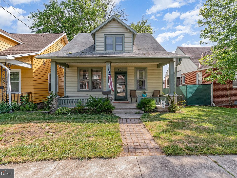 Cute as a button cape cod just one block from the river without being in flood zone. Enjoy walks along the river and prime viewing for fireworks. Convenient first floor bedroom with two additional bedrooms on the second floor. Largest bedroom also has a walk-in closet. Hardwood flooring through most of the home, new flooring in kitchen and bath. Fenced in back yard with patio area and driveway off the alley. Driveway could be widened to add more parking. Could this be your dream home? Check out this adorable home today!