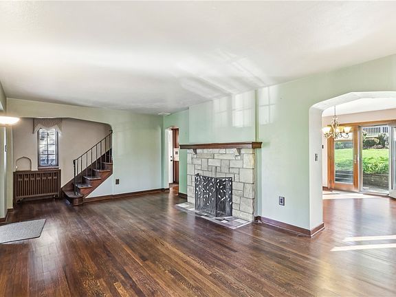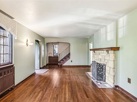 Welcome to this beautiful stone Tudor nestled in the highly sought-after Lincoln neighborhood of Mt. Lebanon. This charming home features lovely hardwood floors and spacious rooms brimming with character.The inviting living room opens to a fantastic enclosed side porch, perfect for use as a cozy den. The updated kitchen seamlessly flows into the dining room, where glass doors lead to a delightful back patio and yard—ideal for summer entertaining.Upstairs, you'll find three generously sized bedrooms and a tastefully updated full bathroom. The partially finished basement offers a bright and welcoming space, complete with new carpet and a stunning stone fireplace.