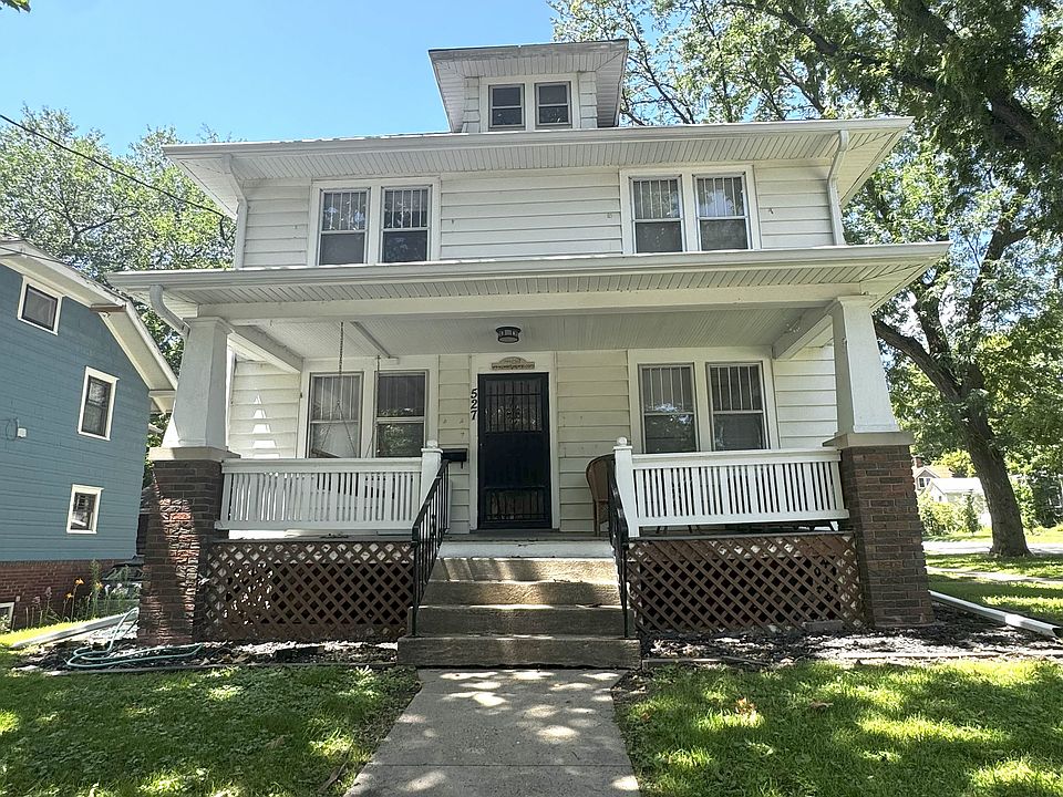 Remodel 4 bedroom historic home, original wood work, hardwood floors, updated kitchen and bathrooms. Two stall garage parking with bike storage located in residential north side neighborhood. This house has been completely updated with new electrical and central air conditioning Has a large unfinished basement with washer and dryer. Four parking spaces, 2 garage, 2 outside space. Covered bike space in garage. Renter is responsible for all utilities.