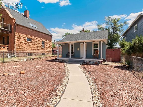Discover the epitome of Colorado Springs charm in this delightful, move-in-ready bungalow just moments from downtown. Located on a serene, tree-lined street, this single-story ranch home welcomes you with a quaint front porch and an impeccably maintained interior. Recently updated in 2019 and 2020, it features new stucco, roof, furnace, gutters, windows, appliances, and upgraded electrical and plumbing systems, ensuring modern comfort and peace of mind. Step inside to find a warm ambiance highlighted by wood floors, neutral tones, and elegant white molding throughout. The kitchen is a chef’s dream with granite countertops, a five-burner gas stove, and stainless steel appliances, while the custom tile shower adds a touch of luxury to the updated bathroom. Outside, enjoy the privacy of a fenced xeriscaped front yard and a spacious fenced rear yard. The versatile R-4 zoning offers flexibility and potential for various uses. Located for convenience, you’ll appreciate easy access to downtown amenities, Colorado College, and I-25. With stunning views of Pikes Peak and Cheyenne Mountain as your backdrop, this home offers the perfect blend of modern comfort and classic Colorado charm. All furnishings and decor are included. Don’t wait, schedule your tour today and make this exceptional property your own!