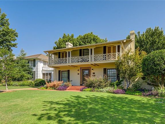 Nestled on one of Historic Crown Heights most stately streets, this traditional home offers a full balcony with spectacular views of the park. Elegant formal areas are light and bright. Updated kitchen with new countertops, backsplash and stainless appliances. Large master bedroom with built-ins, access to balcony, updated ensuite bathroom with walk-in closet. Finished basement with original stone fireplace, wet bar, built-ins, office, half bath and large utility room. Beautiful hardwood flooring throughout. Guest quarters off garage not included in square footage (247') offers a full bathroom and hotel style heat and air unit. The backyard is a tranquil oasis with a private patio situated underneath the pergola. Part of finished basement is included in square footage. 2030 (above grade) + 479 (basement) = 2509 sq.ft. (mol). Just minutes to Western Ave District, Nichols Hills Plaza, Paseo District, Uptown 23rd and Downtown. Close to highway. You will not want to miss this one.