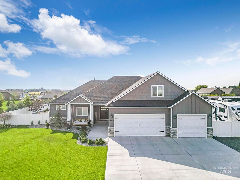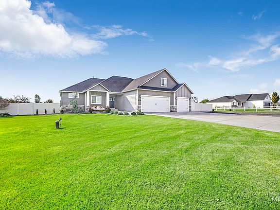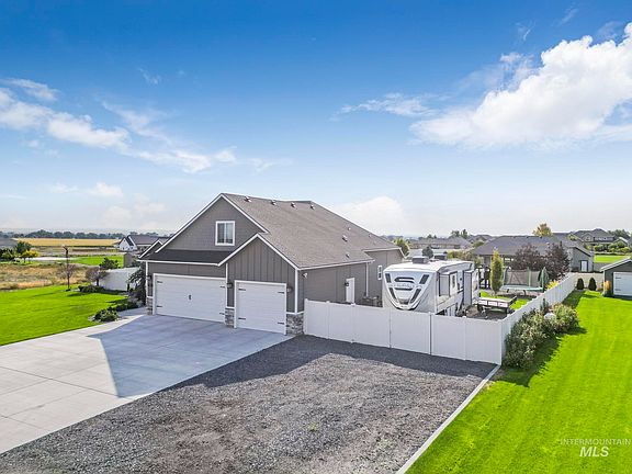 Welcome to 527 Nicholas Drive, this 4 bed, 2 bath home is situated on a sprawling 3/4 acre lot minutes from Twin Falls, Jerome and the freeway. This meticulously maintained property offers a tranquil retreat with a fully fenced yard, play area, ample RV parking space and a charming shed, perfect for those seeking space, privacy, and outdoor living. Inside you'll enjoy the perfect blend of comfort, style and functionality with 4 bedrooms, 2 baths plus an additional family room upstairs. Gather around the warm glow of the built-in fireplace during chilly evenings and enjoy the built-ins that adorn it. The kitchen boasts modern appliances including a propane stainless steel stove and great corner pantry. The primary suite offers a ton of natural light, dual vanities, tile walk in shower, soaker tub and amazing closet.