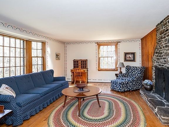 CUSTOM CAPE located on a very rare 7.45-acre lot (two parcels included). This home sits on a knoll surrounded by a rolling lawn and private woods. Living room with pegged hw floors, fireplace and a bay window with views to the front lawn. The country kitchen is open to the dining room with wood wainscotting. The family room is right off the kitchen/dining rm with warm wood walls and access to a three-season glassed room to enjoy the views into the private yard and has an auxiliary propane heater. First floor primary bedroom with double closets. Full bath on the main level. The second floor has two good sized bedrooms with built-in drawers and a large storage room that could be developed into another bedroom if a dormer were to be added. Full bath on this level. The basement is partially finished with rec room with a fireplace. Efficient natural gas Lynx on-demand heating system. New 200-amp electrical panel and entrance cable. Storage barn. Public water & sewer. Polish this gem!