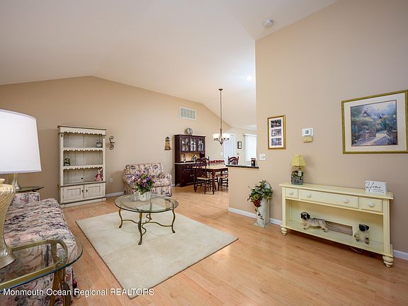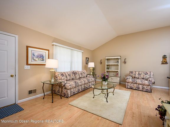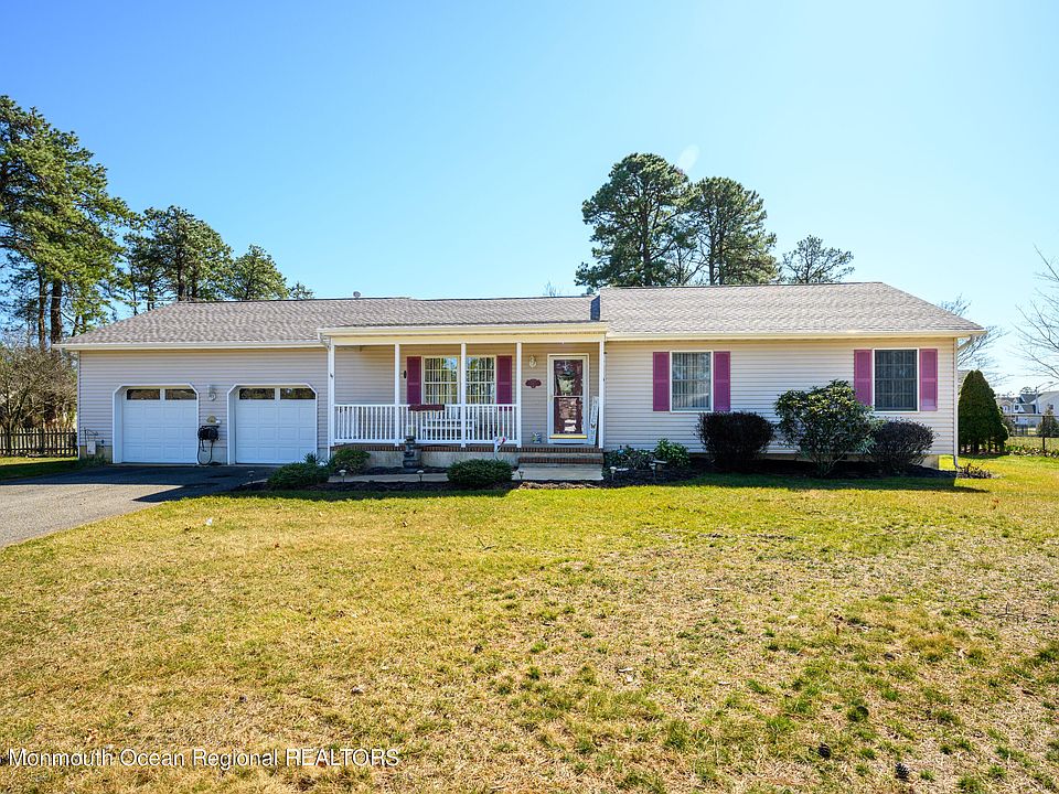 This fabulous sprawling ranch home with two bedrooms (can be 3) and two full baths ranch home has great curb appeal. It's perched high off the street on an oversized 125 x 125 property with tasteful landscaping. An oversized 2 car garage and a long drive can accommodate several vehicles. A covered front porch welcomes you and your guests home. The open floor plan invites you in with great natural lighting, its generous size with vaulted ceilings and flows through the main living areas. At the center is the modern design-open kitchen, that boasts granite counters, stainless appliances, recessed lighting and a breakfast bar. Adjacent is the comfortable and well sized family room complete with a gas fireplace for ambiance and warmth and sliders that lead out to the rear yard, deck and a quiet sunroom where you can fully relax. The Primary bedroom is well appointed with its own private bath, walk in closet and a full-size office room. Perfect for work at home or even a home gym. (If needed, the office within the primary bedroom can be made into a 3rd bedroom as floor plan was originally intended.) A super sized 1718 sq ft ranch, that is well-cared for. A gem of a home and ready for you!