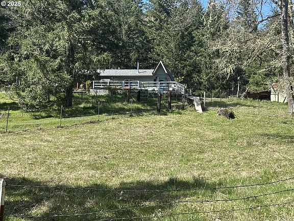 The location of this charming ranchette is so incredibly beautiful and it is the last property with county road maintenance. Gently sloping pastures and hills contain an expansive variety of trees, grass, and foliage. The home is darling and cozy with a large covered deck to enjoy sunrises and sunsets. The original section is an A-frame built in 1975 and a few years back seller did a major addition to the home adding a second living room, bedroom, and bathroom, all fully permitted. The pellet stove was installed new in 2025 and a new roof in 2020. The home is mostly one level with just one step inside. Home is wired for a whole house generator - so you can always have power. The shop is very tall and measures 40'x20' attached 20'x20' three sided garage. There are two holding tanks for the well, 1500 gallons under ground and 1000 above ground and the sellers have never had to haul water! This is a really special place with a lot of privacy and elbow room to do the things you enjoy. Conveniently located approximately half way between Eugene and Roseburg.