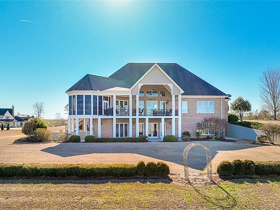Custom built in 2008 by Davis Group Custom Builders, Gregg Davis combined his knowledge from decades in his family-owned lumber business with an expansive design worthy of the Blue Ridge Mountain back drop this development is known for. This home is showcased by a well-planned main level for both indoor and outdoor entertainment, a comfortable lower level for more relaxed living and personal entertainment, abundant unfinished storage, and a bonus room over garage with full bath. Notice the double brick arch with keystone as you approach the front door. High ceilings throughout the main level with a 20' vaulted living room ceiling. Extensive crown molding, NEWLY REFINISHED 3/4" real hdwd floors with intricate inlay design, indoor/outdoor JBL surround sound, 3 gas fireplaces (2 interior,1exterior),4 full baths, 2 powder rooms, main level den/office large enough for guest lodging. Centrally placed and open to the breakfast area, living room and formal dining room the main kitchen has two islands, raised eating bar, custom designed mantle over gas cooktop w/pot filler faucet, commissioned artwork back splash and triple bay ceramic sink. Just off the main kitchen is a modern desk space/charging station, whiskey bar w/beautiful glass cabinetry, ice maker, wine chiller and walk in pantry. Designed with entertaining in mind the large laundry room doubles as a catering kitchen with floor to ceiling cabinets, double sink, a second gas cook top, second wall oven, refrigerator and space for a freezer too! Bonus room with full bath over the 3-car garage, cozy all season room, back porch with gas hook up for outdoor cooking and casual dining with a spectacular mountain view! Owners’ suite has octagonal trey ceiling, mountain views and a luxurious bath featuring two-sided walk-through dressing area/closet, separate vanities, multiple jet walk in shower, jetted tub, natural height cherry cabinetry, heated tile flooring, private toilet room, linen closet, and hamper under sink. Down the wooden staircase to the lower-level w/10' ceiling is a second living area with fireplace, wet bar, multi level home theatre room (all audio/visual components, large screen and seating convey with sale), two additional bedrooms w/private full bath, unique powder room w/antique vanity and two oversized climate controlled unfinished storage areas (double exterior doors on one side). More custom features: pre-framed/wired elevator closet on main/lower level ready for new owner to finish, irrigation system, central vac, 2 tankless hot water heaters, and Terminix sentricon baiting system.