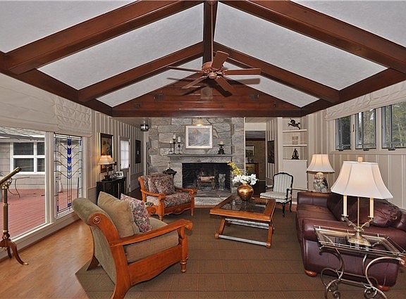Delightfully different ten room residence is certain to appeal to your artistic soul each turn a visual delight, a new discovery. Stone, wood, stained glass and cathedral ceilings are beautifully integrated and deliver an uncommon contemporary lifestyle. Professionally landscaped grounds introduce ponds, pool and patios. Truly a home of unusual character and quality, a more natural host will not be found. MUST CALL FOR GATE ACCESS 973-838-7100