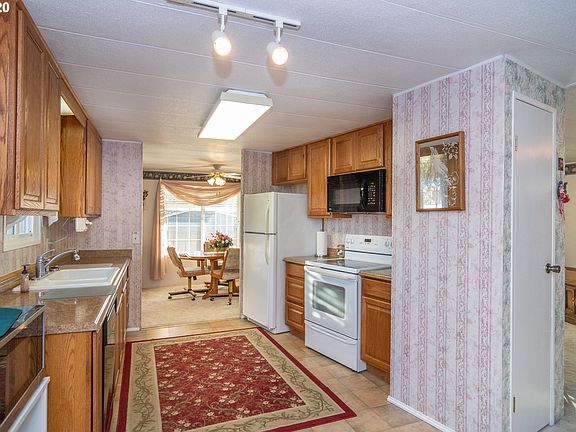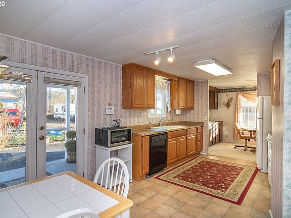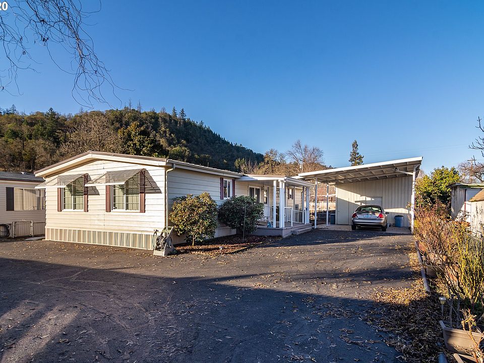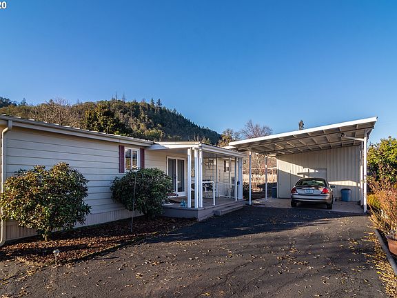 Extremely well cared for manufactured home on a spacious lot. This 2 bedroom/2 bath home is light and bright, with an open floor plan and new vinyl double pane windows. Home is completely fenced and gated. ADA accessible with ramp. Covered porch, manicured landscaping, and large carport with enclosed workshop. Pride of ownership shows throughout. Close to restaurants, hospital and shopping.Home can be financed with 25% down through Rogue Credit Union - Miranda Triplett.