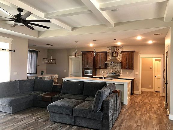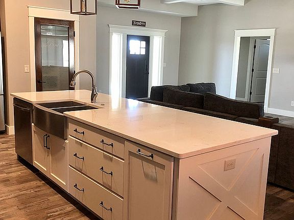 Beautiful like-new zero entry home in a quiet family neighborhood! 3 spacious bedrooms; 2 full baths; over-sized 3 garage; very private fenced in backyard. Open floor plan living room, kitchen, and dining room boast plentiful natural light, electric fireplace, efficient kitchen with stainless steel appliances, quartz countertops, eat-at bar, pantry, extra-deep soft-close cabinets, giant center island for entertaining and over-sized farmer’s sink. Master has beautifully crafted ceiling, on-suite bathroom featuring double sinks, lots of cabinet space and option for waterfall shower heads. Walk-in closet with built in shelving and barn door entry. Backyard has a covered porch with fan and no neighbors directly behind! Inside the insulated 3 car garage, you will find a large storage room which doubles as a storm shelter. Great school district! Extremely well cared for and move-in ready!