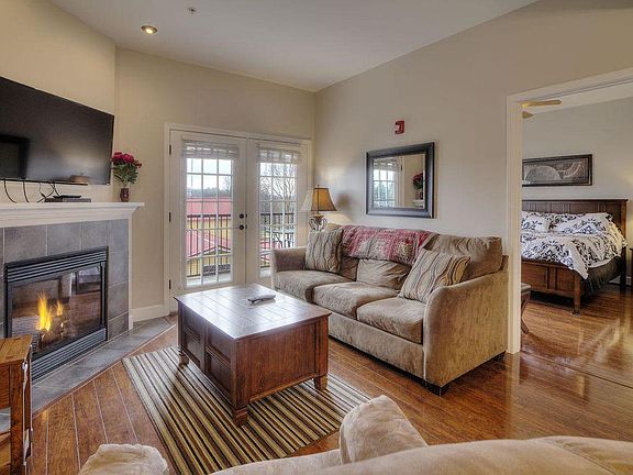 Quiet River Retreat is a beautiful 2BR/2BA first level condo, peaceful with river and mountain views. Well maintained, turnkey, fully furnished.New guest bedroom furniture, tasteful decor. Phenomenal location! Only minutes and a short distance to the main parkway in Pigeon Forge and walking distance to the well-known Apple Barn Restaurant. Open floor plan,perfect for family gatherings and entertaining. The Great Room is spacious, electric fireplace, and has French doors leading to the covered balcony with views of the river, Smoky Mountains and the Titanic Museum. The kitchen is well equipped with cabinetry and dishware and has a breakfast bar for additional dining seating.The unit offers a spacious master suite to relax in with French doors leading to the covered balcony, walk in closet