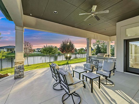 Exquisite one-of-a-kind home w/panoramic waterfront views & a 45-foot deep RV bay! Beautifully redesigned James Clyde home in Star’s coveted Heron River affords views from every living-space window and showcases lofty ceilings, designer finishes w/tasteful millwork, chic lighting, attractive wall accents, a custom dry-stacked stone fireplace framed w/window seats, & so much more. Enjoy wall-to-wall windows throughout living area; a stunning gourmet kitchen with generous workspace, multiple ovens, high-end Thermador stainless steel appliances, & a large working pantry. Retreat to the stay-cation owner's suite w/luxurious soaker tub, curtainless W-I shower, and a one-of-a-kind HUGE W-I closet w/illuminated vanity. Split bedroom floorplan w/newly updated jack&jill bath; office/sitting room area overlooking gated courtyard with lake & Bogus Basin views. And breathe in peace & serenity from the back covered patio as you enjoy waterfront living at its best w/your newly installed custom-built outdoor kitchen.