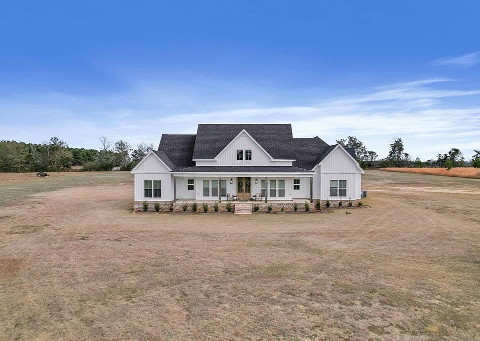 This stunning newer home, built in 2023, offers the perfect blend of modern comfort, space, and country charm. Situated on 6.37 beautiful acres, it features 5 spacious bedrooms, 4.5 bathrooms, an office, and an open-concept floor plan ideal for both everyday living and entertaining. The luxurious primary suite is a true highlight, boasting a large walk-in closet with an attached mudroom and laundry room for ultimate convenience. A 2 car carport, storage room, and thoughtfully designed layout enhance the home's functionality, while the peaceful country setting provides privacy and room to roam, yet keeps you just minutes from city conveniences. This is the best of both worlds: newer construction, modern design, and wide-open space to call home.