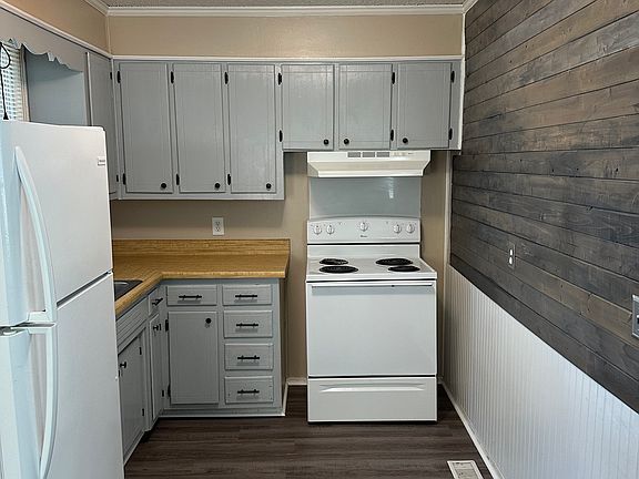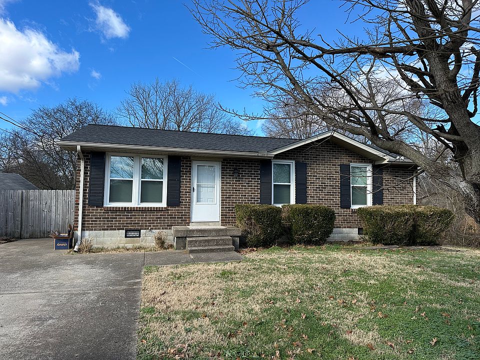 Cozy 3 bedroom, 1 bath home with a huge fenced in back yard. Vinyl plank flooring in the main living area, carpet in the bedrooms, laundry room with pantry shelves, storage room outdoors. One dog under 35 lbs or cat with a $450 refundable pet deposit. Non smoking home. 1 year lease. Tenants are responsible for electric, water, and lawn maintenance. $75 application fee per adult.