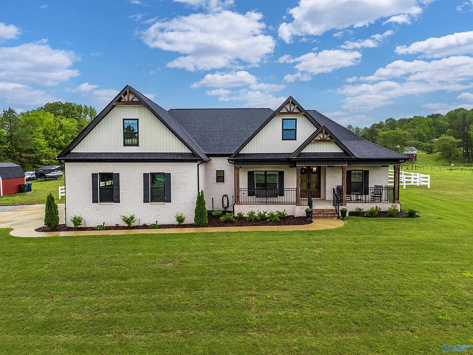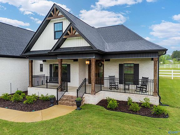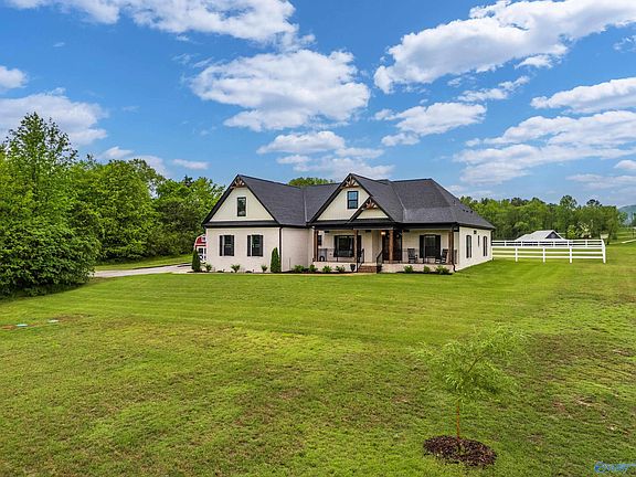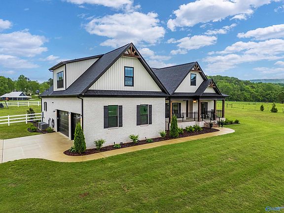 527 Sharps Cove Rd -Experience peaceful country living just outside of Huntsville. This 4 bed, 4 bath home sits on 9 acres with scenic pasture views. Inside, you'll find crown molding throughout & a cozy brick fireplace in the open-concept living area. The kitchen offers abundant cabinet space, a tile backsplash, & an expansive pantry. The isolate primary suite boasts a luxurious bath with a freestanding soaking tub, large tile shower, & a walk-in closet. Upstairs features a versatile rec room, full bath, & 4th bedroom. Step outside to enjoy the screened-in back porch, pergola, & patio. Plus, benefit from a storage shed, 3-car garage, & 8-person s